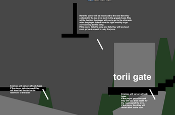 For the brief for this project i had the opportunity to create a game of any genre and any theme. In the end i decided to create a Japanese 2d side scrolling game. For this i had to create a level blockout showcasing the games design.